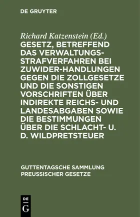 Katzenstein Gesetz, betreffend das Verwaltungsstrafverfahren bei Zuwiderhandlungen gegen die Zollgesetze und die sonstigen Vorschriften über indirekte Reichs- und Landesabgaben sowie die Bestimmungen über die Schlacht- u. d. Wildpretsteuer