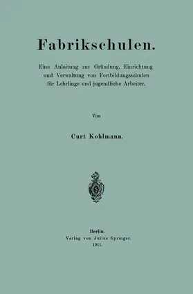 Jugendfürsorge.- 1. Kapitel. Statistik.- a) Allgemeine Berufsstatistik.- b) Statistische Tabellen über die gewerblichen und kaufmännischen Fortbildungsschulen in den wichtigsten deutschen Staaten.- 2. Kapitel. Fortbildungsschulwesen.- a) Geschichtlicher Bückblick.- b) Jetziger Stand.- c) Vorteile der Werkschulen.- d) Formalitäten für die Anmeldung der Werkschulen.- 3. Kapitel. Praktische Ausbildung.- a) von gewerblichen Lehrlingen.- b) von kaufmännischen Lehrlingen.- c) von jugendlichen Arbeitern.- 4. Kapitel. Die Werkschule.- a) Die Schüler.- b) Die Lehrer.- c) Die Schulzimmer.- d) Die Unterrichtszeit.- e) Die Unterrichtsfächer.- f) Das Lehrverfahren.- g) Die Lehr- und Lernmittel.- 5. Kapitel Lehrpläne.- a) Bürgerkunde.- b) Deutsch.- c) Rechnen.- d) Algebra.- e) Geometrie.- f) Buchführung.- g) Wechselrecht.- h) Handelsrecht.- i) Gewerbekunde.- k) Zeichnen.- l) Literatur.- 6. Kapitel Kosten und Nutzen.- Titel der wichtigsten einschlägigen Gesetze und Verordnungen. Entwürfe. Formulare.- a) Bestimmungen für das Reich.- b) Bestimmungen für die einzelnen Bundesstaaten.- 1. Preußen.- 2. Bayern.- 3. Sachsen.- 4. Württemberg.- 5. Baden.- 6. Die anderen Bundesstaaten, die freien Städte und das Reichsland.- c) Zeugnisformulare.- d) Preußisches Normalstatut für Fortbildungsschulen.